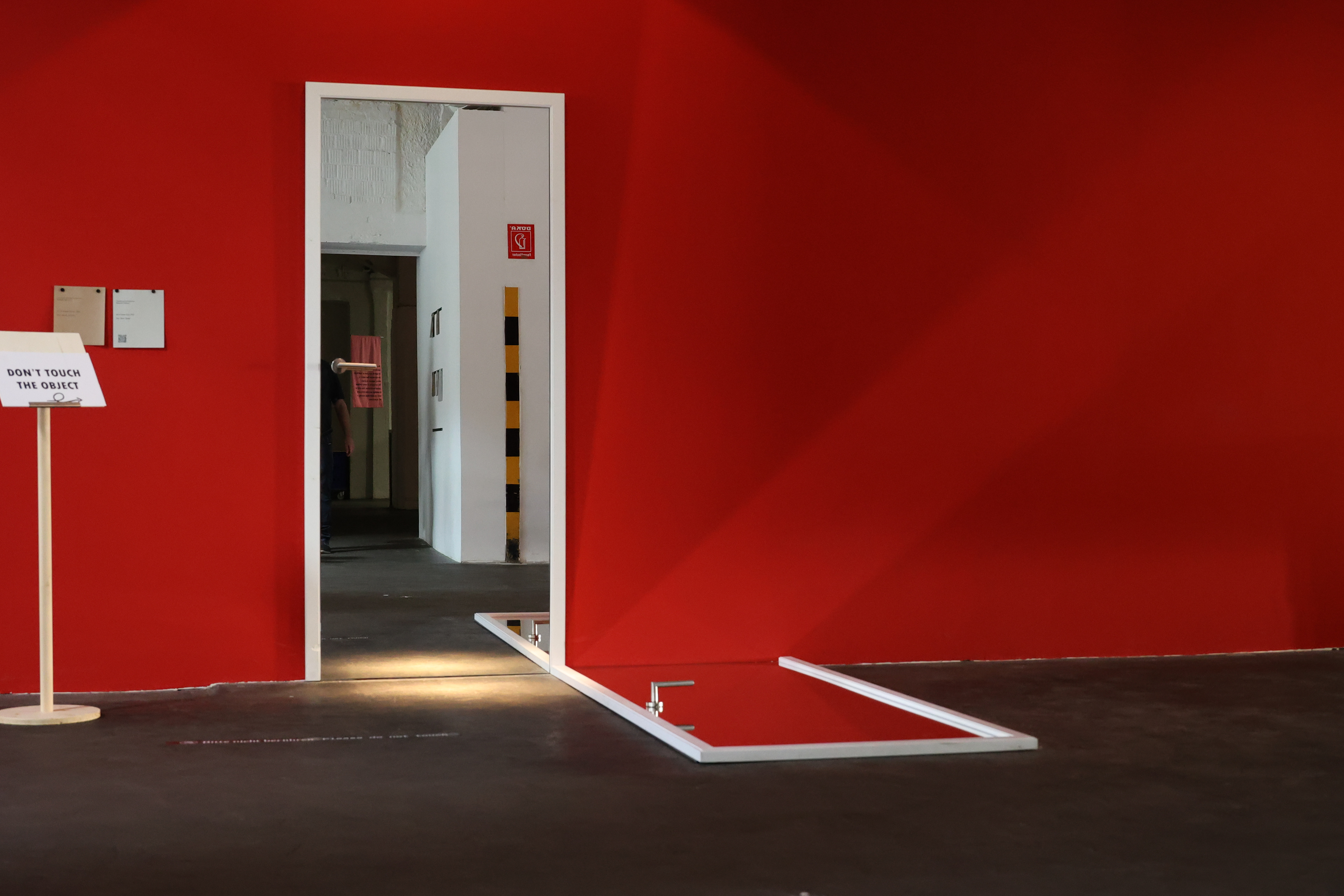 Despite the "don't touch" sign, the viewers were always tricked by the installation and tried to access a space which does not exist. In response, the management of the exhibition had to add more signs and then allocate a security person next to the work, to make sure that people don't try to go in the imagined space.